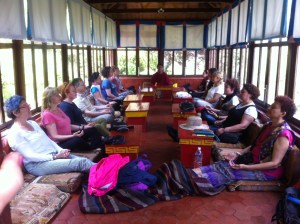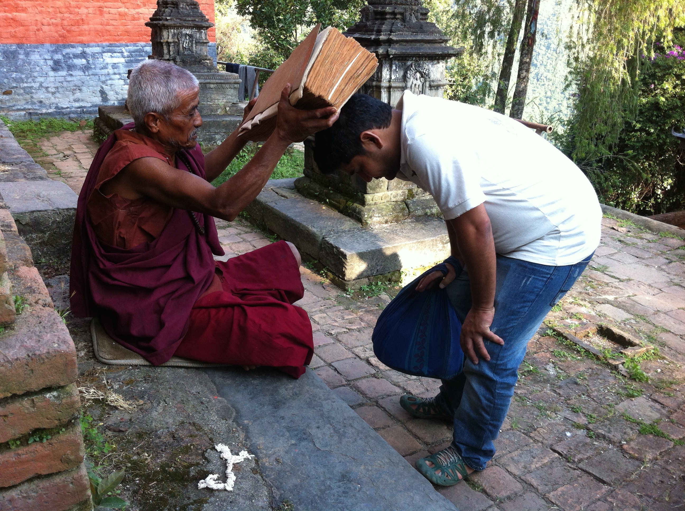 Gezinin iki günü bize bir Tibetli rahip/lama eşlik edecek. Lama Pema Topchhen’den meditasyon öğreneceğiz. Himalaya dağlarına bakarak.
